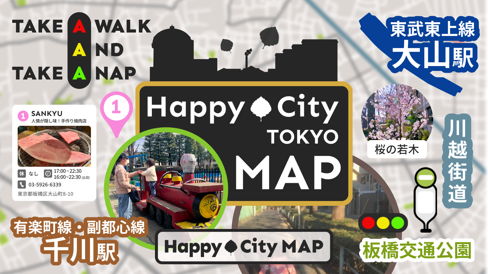HappyCityMAPのコンセプトである”TAKE A WALK AND TAKE A NAP”になぞらえて、