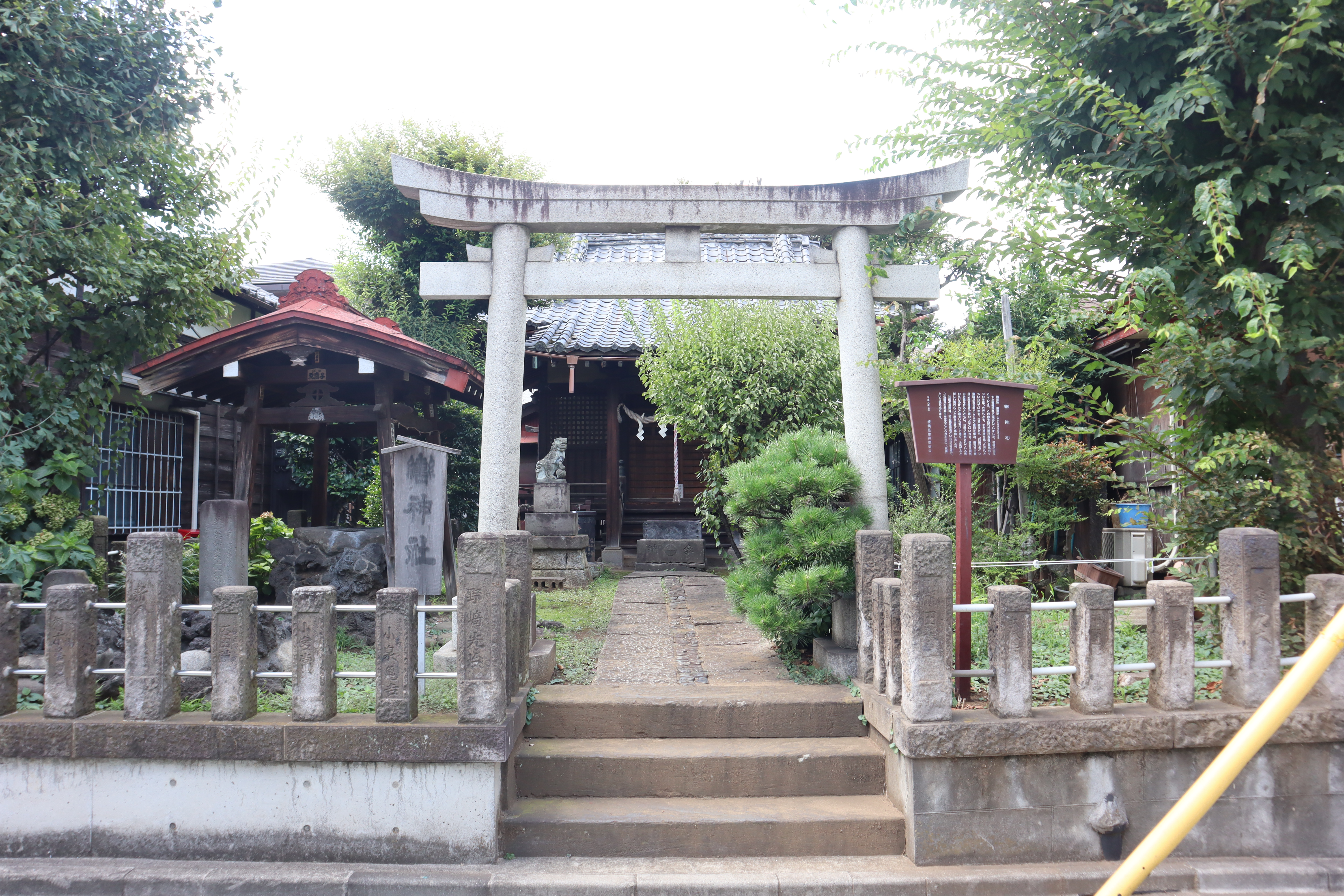 また、一説では、徳川家康がこの地で休息をとった際、休憩後に残された馬の轡を祀ったことに由来するともいわれています。江戸時代には「轡権現」と称され、多くの人々の信仰を集めていました。同時期には、家康が使っていた竹杖を祀る「竹根(竹丈)権現社」という神社も存在しましたが、現在は氷川神社(板橋区氷川町)に合祀されたほか、一部は板橋区仲宿に現存しています。