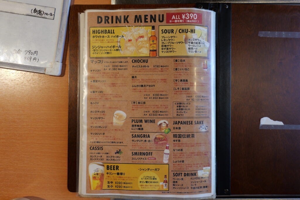 メニュー表には多彩な商品が並び、お酒やお肉を存分に楽しむことができます。特に韓国料理のメニューが豊富で、SANKYUさんのおすすめでもあります。メニューには工夫がいっぱい、また行くたびに、ちょっとしたフェアをされていたり、期間限定のキャンペーンをされていたり…とても人気のお店なので訪問前に、SNSでの発信をCheckしたり予約をするなどしたほうが楽しめると思います!(※メニューや料金は取材当日のもののため、ご参考まで)