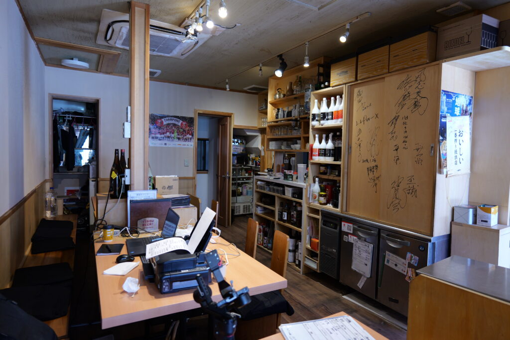 店内に入ると、まず目に入るのは壁に描かれたサインです。漫画家や格闘家など、地域の方や著名な方もちょこちょこと書いて行かれるようで、お店の気ぶりがうかがえます。