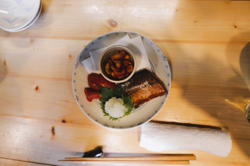 出汁の効いたおでんや、りんごのチップで燻されたさば、明太子の燻製(ご自身で燻製されたとのこと!)など、多彩な料理が楽しめます。特に印象的なのは、自家製のカラスミは、なんとこの板橋の大山のお店で完封に干して完成させているということ。また、いぶりがっこや梅水晶、花わさびといったおつまみとも盛り合わせた、おまかせの”おつまみ盛り合わせ”は見た目も華やかで魅力的です。