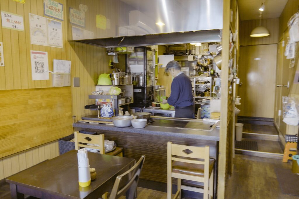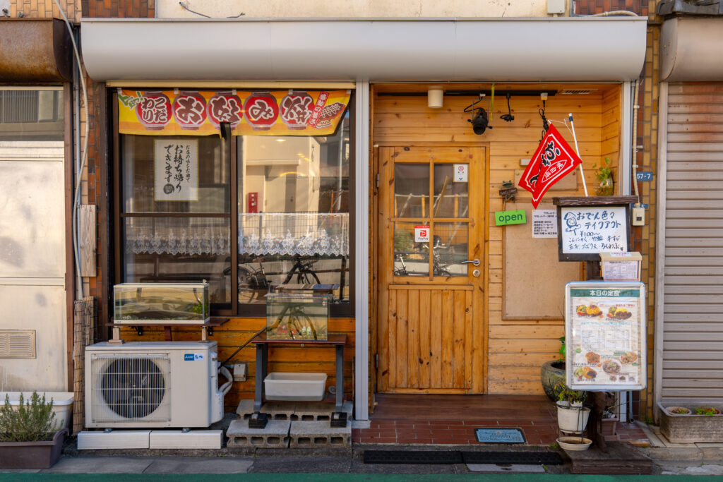 Nari和伊さんは千川駅から大山駅方面へ12分歩いたところにあり、コワーキングスペースTAKE A NAP千川幸町店からも5分かからずに到着できます。 お店の入り口には金魚のピピちゃんとポポちゃんが迎えてくださり、「ようこそ」と呼んでいるような雰囲気です。ドアを開けて店内に入ると関西出身の元気な店主、橋本さん夫妻が声をかくてくれます。 入ってまず目に入ってくるのは壁に貼り付けてあるたくさんのメニューです。Nari和伊さんではたくさんお料理が提供されており、そのメニューの豊富さが店内の壁を見るだけですぐにわかります。お好み焼きからパスタ、海鮮丼などたくさんありすぎて毎回どれを注文しようか迷ってしまいそうになるくらいです。 席は4人席、2人席が2つ、それとカウンター席も用意されています。各席から厨房を見ることができ、カウンター席の目の前にある鉄板で調理をしていただけるので、迫力ある調理を見ることができ、美味しそうな調理工程を見ながら楽しく待つこともできます。 来客されているお客さんも店主と仲良く話されている方も多く、地元にも愛されるお店だということがすぐにわかります。