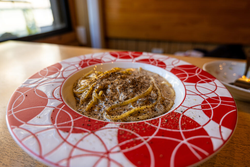 Nari和伊さんはたくさんのメニューがあり、どれもおすすめで本当に美味しいのですが、お店の看板にもなっているお好み焼きは特におすすめです。 張り紙には豚、イカ、ミンチ、イベリコ、牛すじ、えび、牡蠣、ミックスと海鮮からお肉のものまでさまざまです。ふわっとした生地とそれにあった食材の調和された味がとても美味しいです。目の前で調理されて提供されてくるので、工程を見ることができる楽しみもあり、アツアツで提供される本場関西風のお好み焼きは絶品です。 またパスタもおすすめで、こちらもトマトソースやボンゴレから、クリーム系、イカ墨系と本当にたくさんのメニューが用意されています。オリーブオイルは20年以上同じところのものを使用、パスタにもこだわりがあり、こちらも同様に人気のある料理です。 その他にも鉄板で作る焼きそばやオムレツ、海鮮丼や牛肉丼などもあり、うどんやチーズ系、冬にはおでんもあるそうで、さまざまな料理が用意されているので飽きないです。また、Instagramには「リクエストいただいた料理は99%作る」とのことで、食べてみたい料理があったら聞いてみるのも面白いですね。