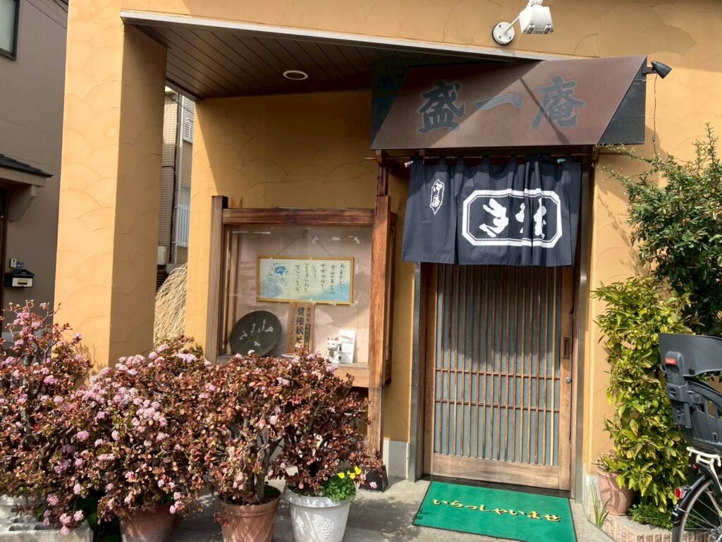 盛一庵(せいいちあん)さんは、鮫洲大山線沿い漆喰壁の落ち着いたたたずまいのそば屋さん。
